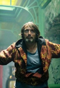 La película está contada desde su mirada, y eso lo cambia todo. Porque su forma de ver el mundo mezcla realidad, fantasía y pesadilla sin pedir permiso. Lo cotidiano se vuelve inquietante y lo inquietante, curiosamente, tiene su lógica interna. Y ahí aparece el vecino, interpretado por Mads Mikkelsen (sí, ese tipo que siempre parece saber más de lo que dice), al que la niña convierte en una especie de cazador de monstruos improvisado. Una figura medio salvadora, medio sospechosa.